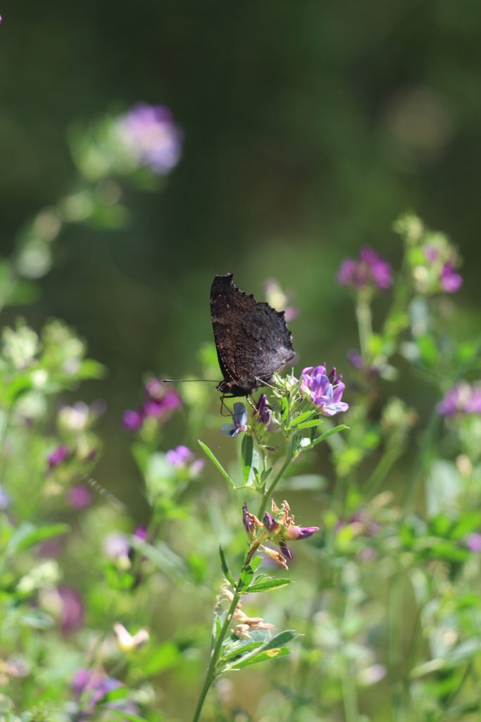 Starting out with sheet mulch plus a few trees and shrubs planted through in the autumn of 2020, it is now possible (just!) to see how shading facilitates establishment of microclimates and different herbaceous plants.